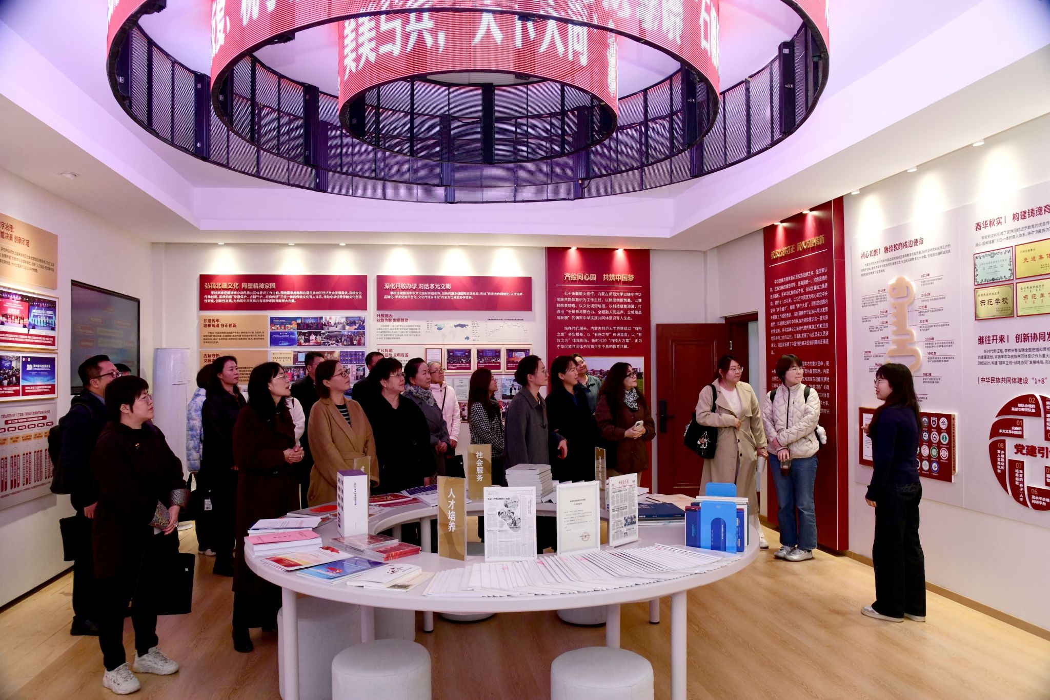 现场教学环节,全体学员参观了“内蒙古自治区铸牢中华民族共同体意识理论研究成果展”和内蒙古师范大学国家民委中华民族共同体研究基地,通过实地观摩与互动交流,进一步增强了做好统战工作的责任感和使命感。